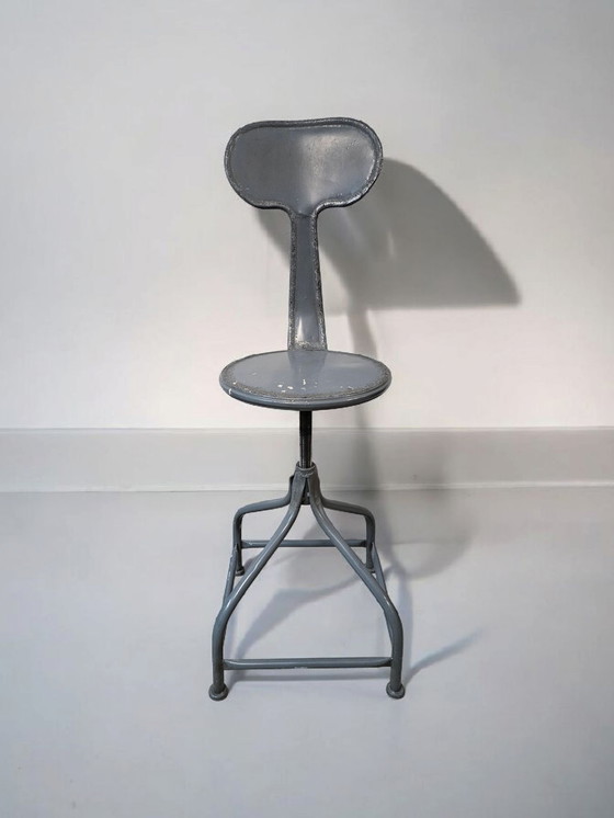 Geweldige Mid Century Industry metalen gereedschapsstoel - draaistoel....in grijs....van het type " Whale Tail "