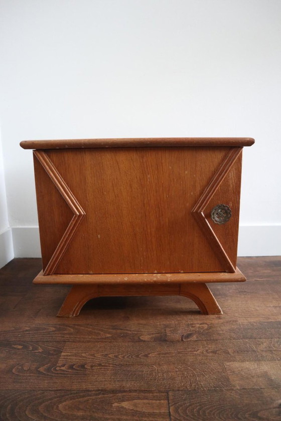 Dit charmante vintage nachtkastje brengt een vleugje nostalgie in je slaapkamer. Met zijn warme bruine houttinten en klassieke ontwerp is het een perfecte aanvulling voor elke retro-inrichting. Het biedt voldoende opbergruimte voor je boeken, lamp of andere persoonlijke spullen.