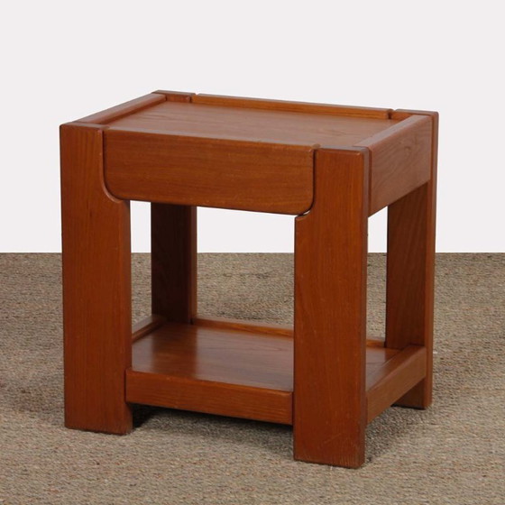 Dit vintage nachtkastje is gemaakt van massief iepenhout. Het is gemaakt in Frankrijk in de jaren 1980. Het kan open dankzij een lade aan de voorkant. Dit nachtkastje is in goede originele staat.