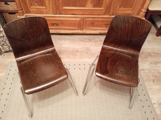 Hier wird ein Original Thur-Op-Seat Stapelstuhl aus Pagholz und Chromgestell verkauft.