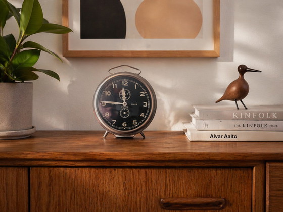 De wekker is in uitstekende staat, slechts nauwelijks zichtbare krasjes op de kunststof front. Made in Germany, ca. jaren 1960.
