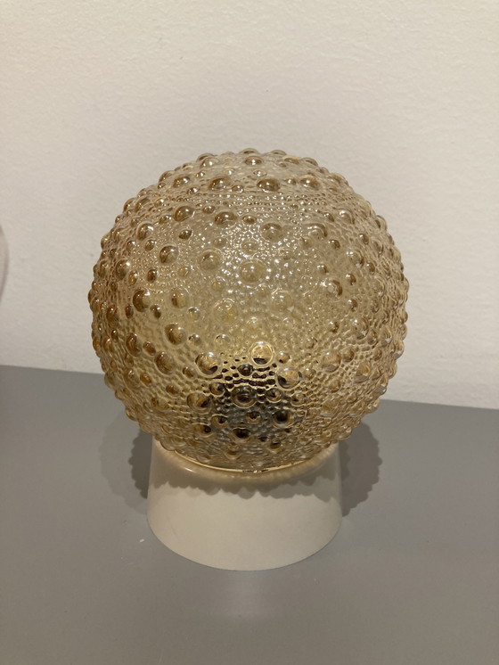 Vintage plafondlamp zogenaamde bubble lamp in mooie amberkleur.