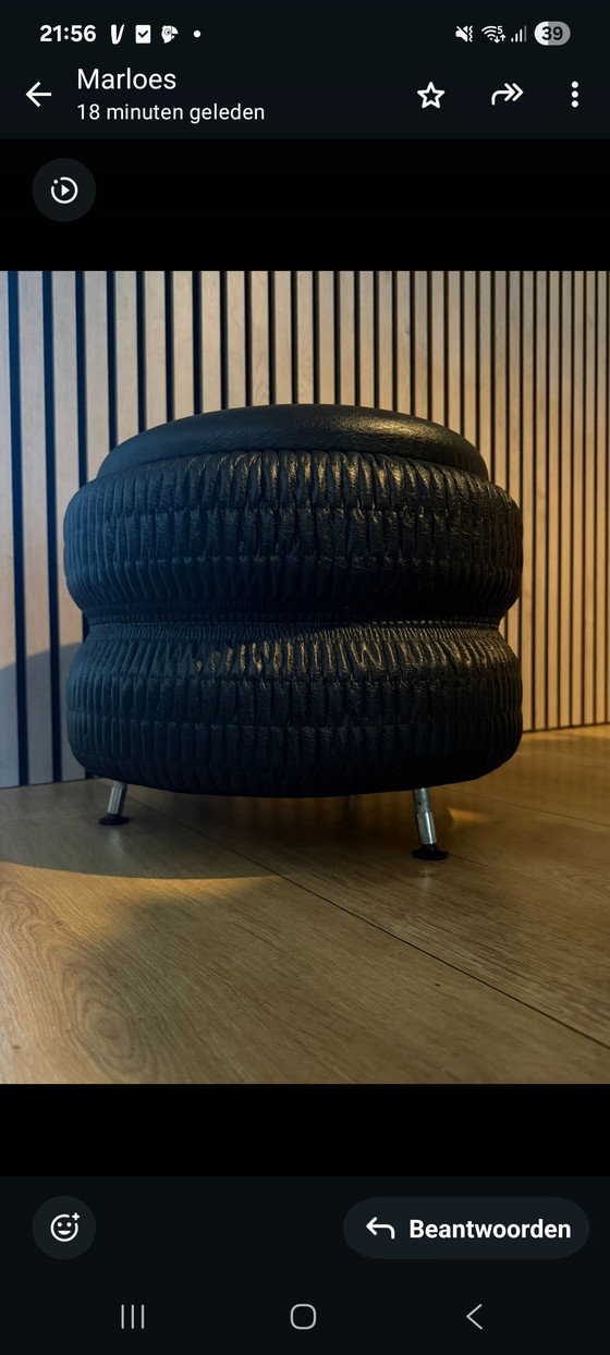 Ervaar de unieke charme van de Space Age met deze vintage poef. Bekleed met hoogwaardig skai leer, biedt deze poef niet alleen stijl maar ook uitzonderlijk comfort. De strakke lijnen en moderne metalen poten versterken het futuristische ontwerp, waardoor het een opvallend stuk is in elke kamer. Voeg een vleugje retro-futurisme toe aan uw interieur met deze prachtige poef.