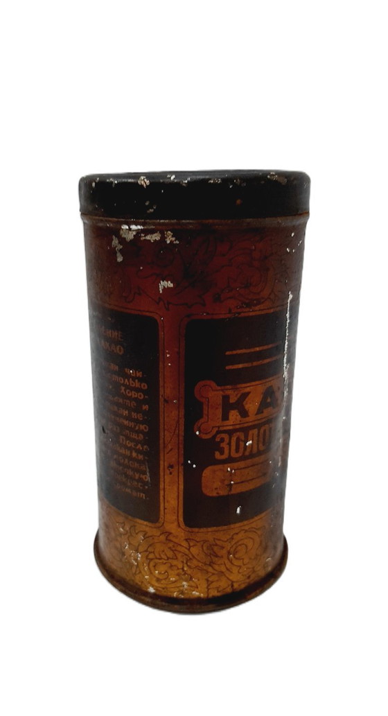 Herkomst/Tijdperk: Het gebruik van cyrillisch schrift suggereert dat dit specifieke blik is geproduceerd voor de Oost-Europese of Russische markt. Deze blikken dateren doorgaans uit het begin van de 20e eeuw.