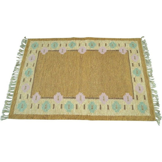 Origineel Zweeds rolakan vloerkleed, met de hand geweven. Gemaakt van wol in de jaren 70. Bewaard in zeer goede staat en na een professionele reiniging. Een geweldige aanvulling op het interieur in de stijl van Mid Century Modern of Scandinavisch Modern.Verzending naar de EU is 30 Eur