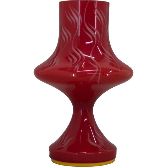 Vintage rood glazen tafellamp van Valasske Mezirici, Tsjecho-Slowakije 1970