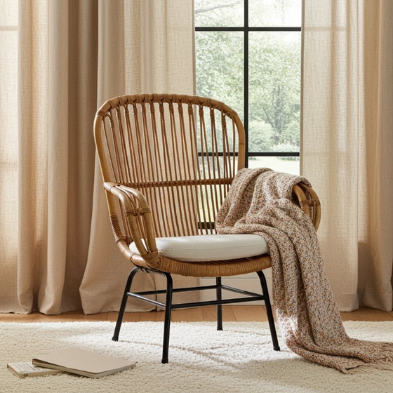 Materialen: Gevlochten rotan zitting met duurzame metalen poten