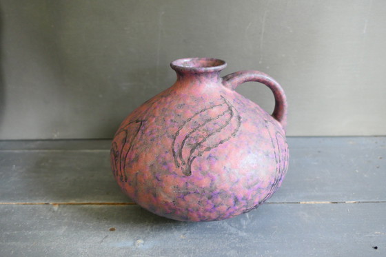Vintage Ruscha 303 - 3 vaas oud roze paars zwart. Diameter 22,5 cm, hoogte 17,5 cm. In een uitstekende staat. Ook nog een maat groter beschikbaar in een andere advertentie. De prijs is per stuk.