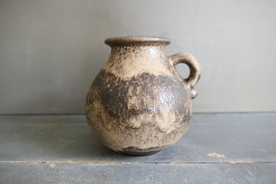 Vintage Ruscha vaas 354 W. Germany bruin beige. Hoogte 16,5 cm, diameter 15,5 cm.
