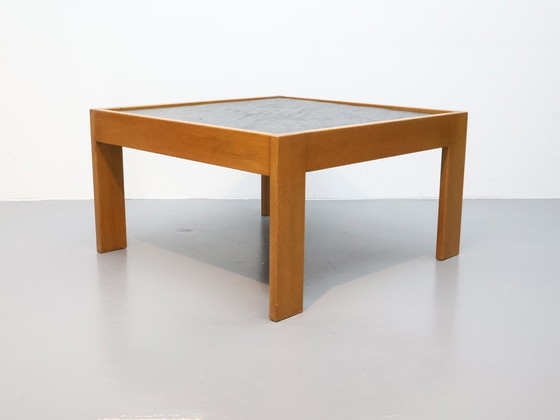 Vintage salontafel Vierkant model Eiken frame Dik tafelblad van leisteen Hele zware tafel In nette vintage staat Hoogte 46.5 cm Breedte 83.5 cm Diepte 83.5 cm
