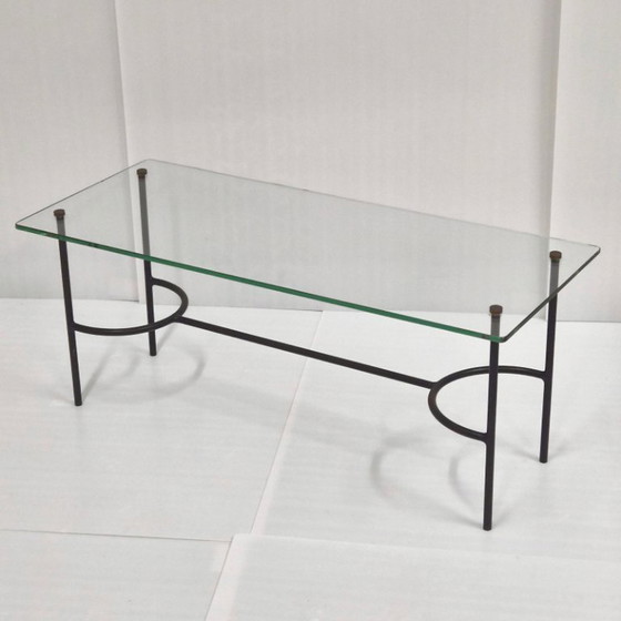 Vintage salontafel uit de jaren 50, zwart gelakt staal en glas, jaren 50, DLG Pierre Guariche