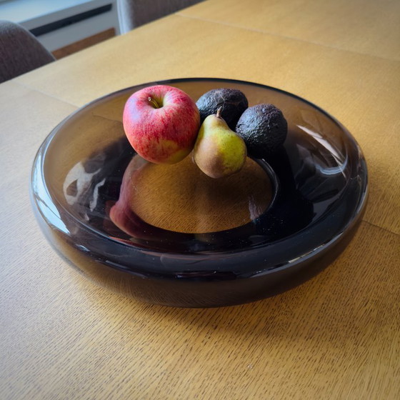 Prachtige vintage, amberkleurige schaal in een Scandinavische stijl.