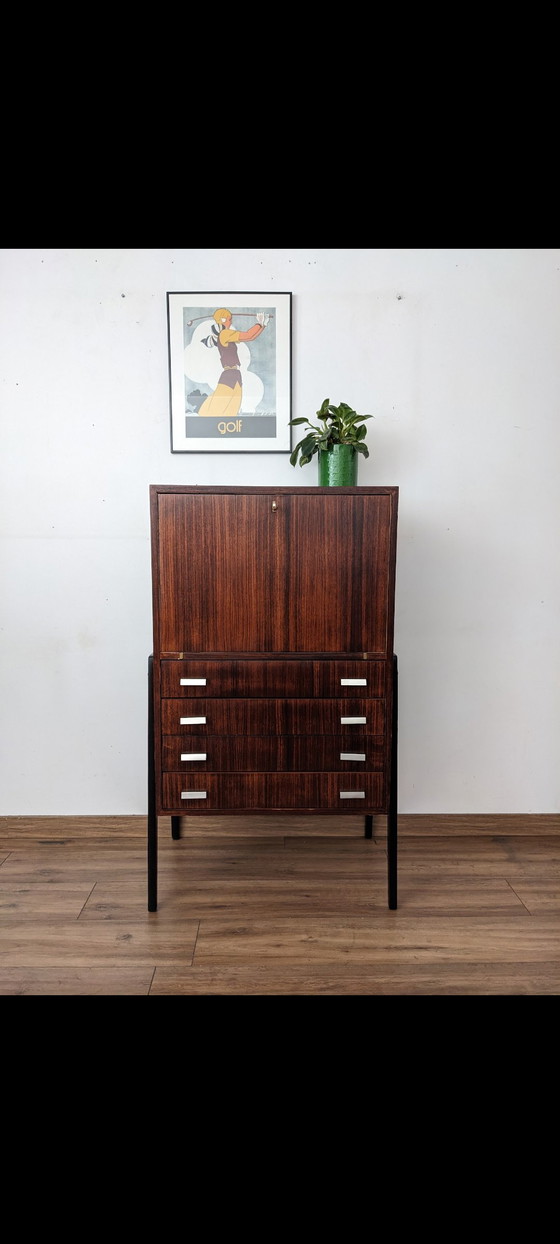 Ontdek dit vintage Scandinavische secretair bureau, een blikvanger die functionaliteit combineert met tijdloze esthetiek. Met zijn strakke design en elegante lijnen past dit meubelstuk perfect in elk modern of klassiek interieur.
