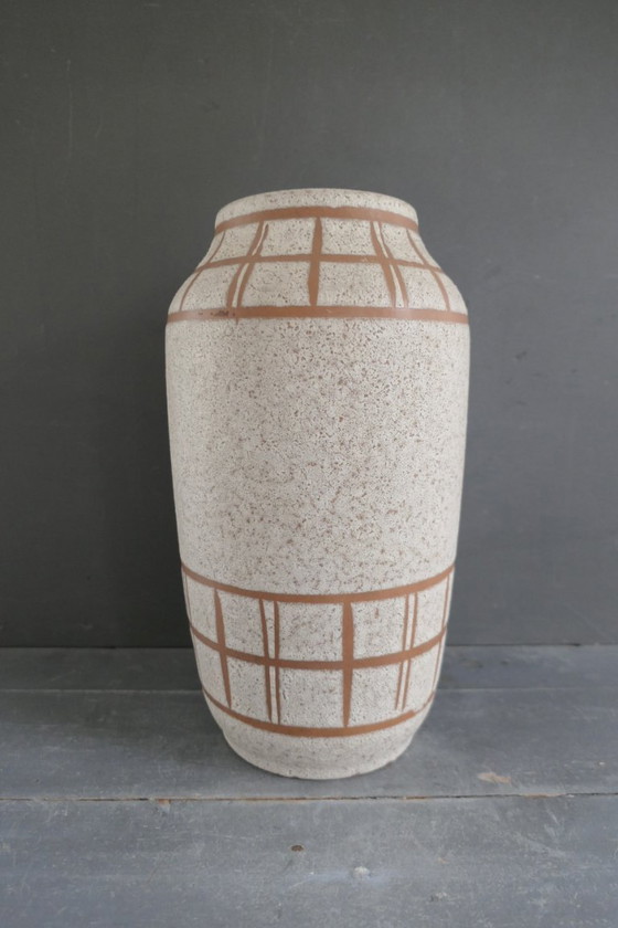 Vintage Scheurich grote vaas 517-38 W. Germany. Hoogte 39 cm, diameter 21 cm. Een miniscuul schilfertje af aan de onderkant, zie laatste foto. In een mooie conditie.
