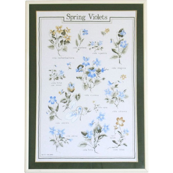 Vintage schilderij van viooltjes met houten lijst, 1960