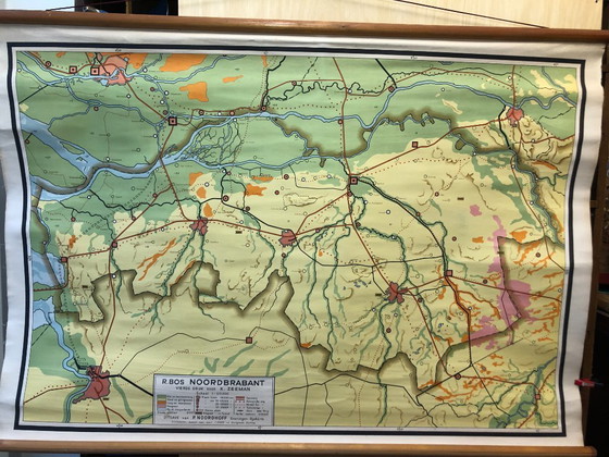 Vintage schoolplaat schoolkaart Noord-Brabant 115 x 84 Bos Noordhoff