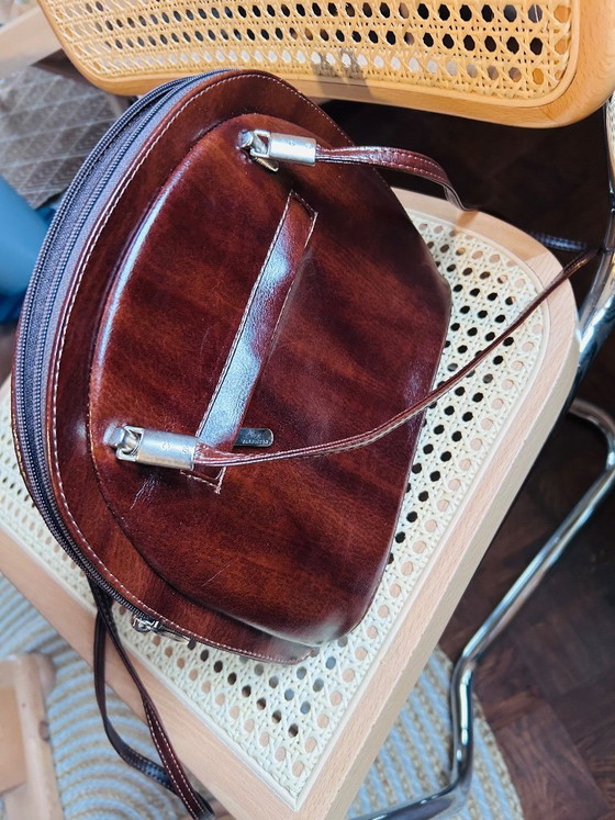 Deze vintage schoudertas van Alex Valentino is een waar juweel voor liefhebbers van klassieke mode. Het warme bruine leer straalt elegantie uit en past perfect bij elke outfit.