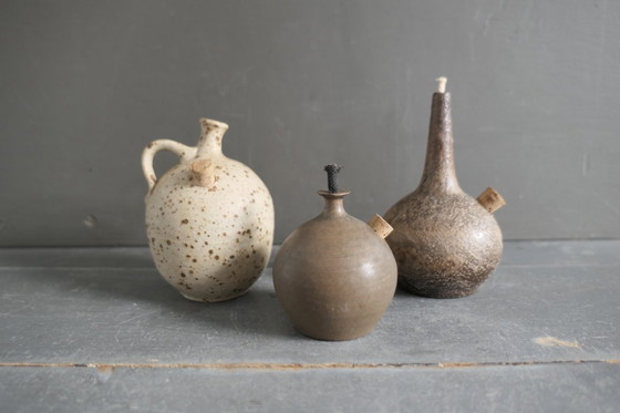 Vintage set van 3 keramiek olielampen in bruintinten.