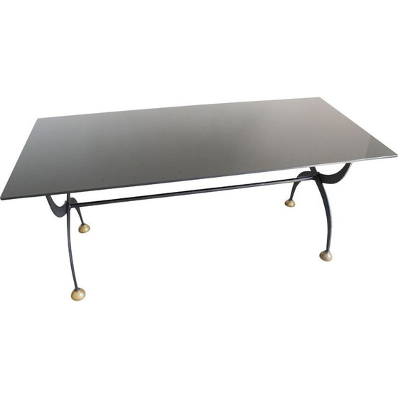 Vintage smeedijzeren tafel met zwart gelakt glas, Italië 1970