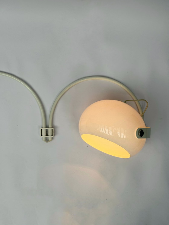Een tijdloos design uit de jaren 70 dat prachtig past in minimalistische, vintage, retro, space age en mid-century moderne interieurs. Geleverd met de originele wandmontageplaat en een retro gloeilamp 💡