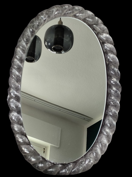 Te koop: een iconische wandspiegel uit het Space Age-tijdperk, vervaardigd door het gerenommeerde Duitse bedrijf Hillebrand in de jaren 70. Dit model (nr. 22 220) onderscheidt zich door zijn opvallende, massieve frame van getextureerd acrylglas (ook wel ijsglas of Lucite genoemd).