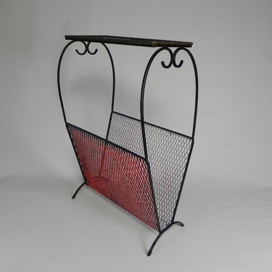 Vintage stalen bijzettafeltje met tijdschriftenrek, jaren 50