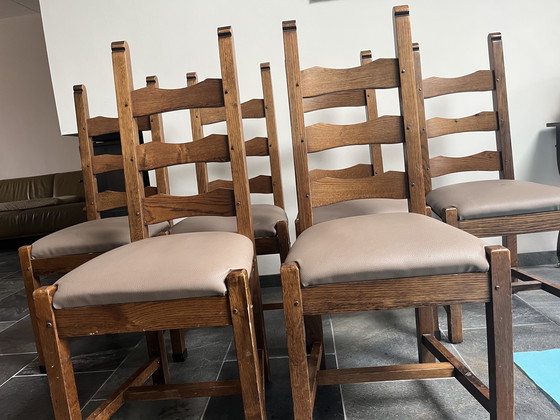 Zeer sterk en degelijk. Bekleed met nieuwe skai (taupe kleur) en er zit vering in.
