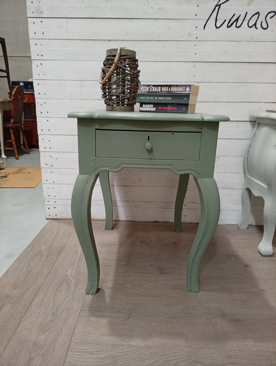 Dit charmante vintage tafeltje met lade voegt een vleugje nostalgie toe aan elke ruimte. Met zijn elegante groene afwerking (kleur Carriage house, FMP) en sierlijke poten is het een perfecte aanvulling voor zowel klassieke als moderne interieurs. De handige lade biedt extra opbergruimte voor kleine voorwerpen.
