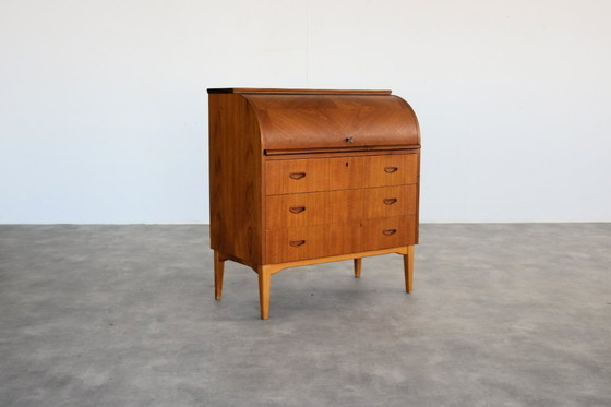 vintage secretaire | bureau | SMI | Zweden period | jaren 60 design | SMI | Zweden condition | goed | lichte gebruikssporen size | 97 x 90 x 46 (hxbxd) details | teak; messing; artikelnummer | 3085