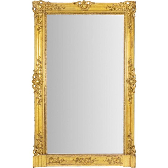 Regency stijl trumeau van hout en verguld stucwerk, versierd met cartouches aan de vier uiteinden en versierd met guirlandes van bladeren en bloemen.