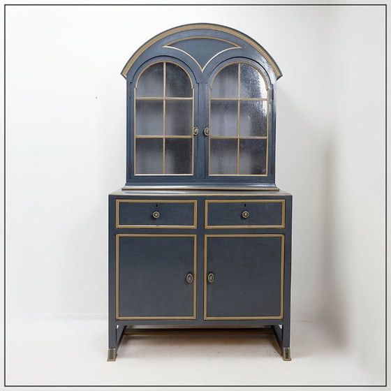 Ontdek deze tweedelige vintage kast in grijs gelakt hout, een elegant meubelstuk dat een vleugje retro charme aan uw interieur toevoegt. Deze kast is ideaal voor liefhebbers van vintage stijl die op zoek zijn naar een praktische én esthetische opbergoplossing. Er zijn twee kasten beschikbaar.