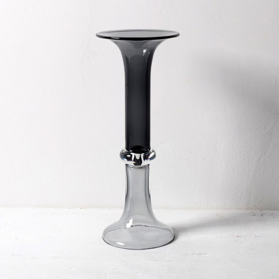 Zeldzame vintage hoge elegante tweekleurige vaas / Mid-century dubbelzijdige vaas van grijs en helder glas / Woondecoratie / Portugal / jaren 70.