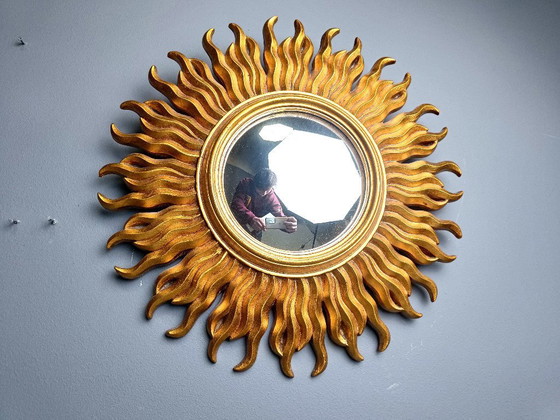 Vergulde resin zonnestraal spiegel met convex spiegelglas.