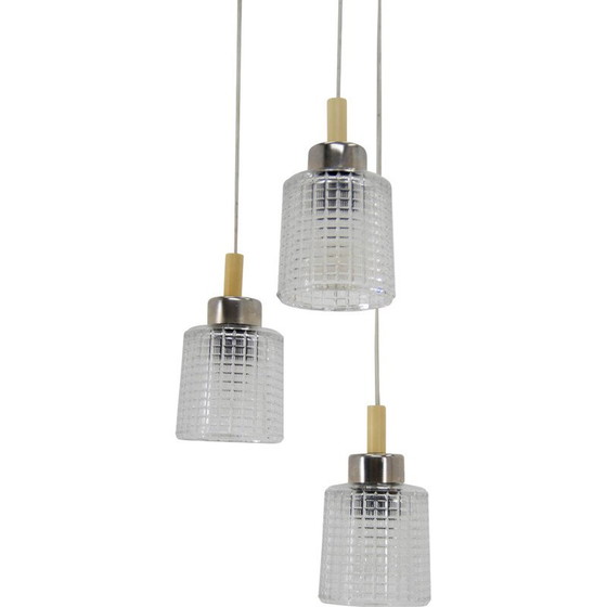 Vintage verstelbare kroonluchter in glas, chroom en metaal van Pokrok Zilina, Tsjecho-Slowakije 1970
