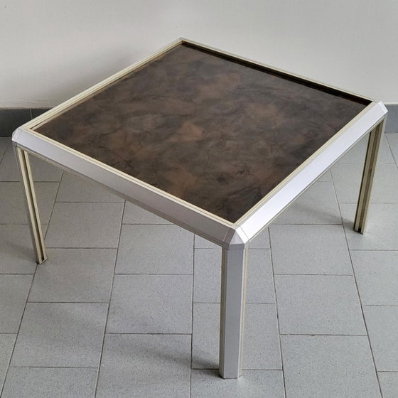 Vintage vierkante salontafel/bijzettafel uit de jaren 60 van aluminium en formica.