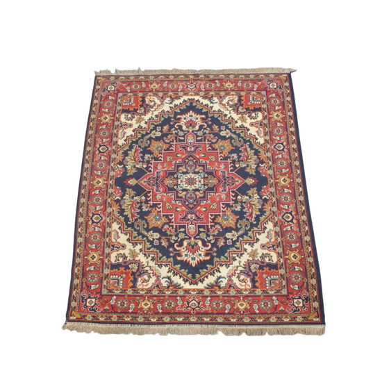 Aangeboden dit vintage vloerkleed met voornamelijk rood en donkerblauw met patronen 236x170cm.