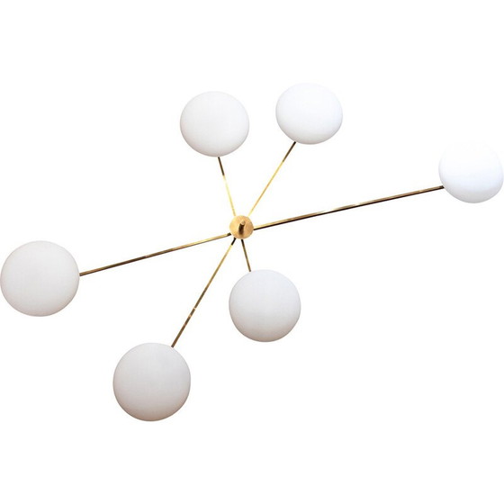 Vintage wandlamp in verguld messing en wit opaline, Italië