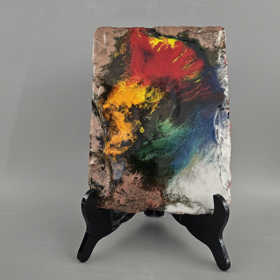 Vintage West-Duitse Fat Lava Muurplaquette Gemaakt Door Vulkan Keramik / Ostara Fliesen. Kleuren: Rood, Oranje, Blauw en Groen.