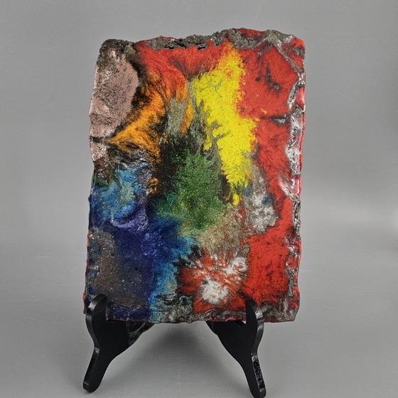 Vintage West-Duitse Fat Lava Muurplaquette Gemaakt Door Vulkan Keramik/Ostara Fliesen. Kleuren: Rood, Geel, Blauw En Groen.