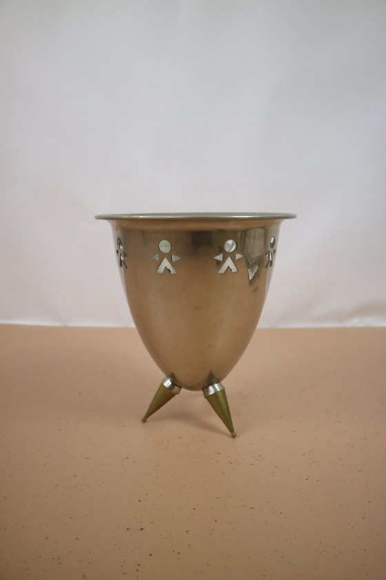 Vintage wijnkoeler RVS wijnkoeler/champagnekoeler met messing pootjes. Afmetingen: dia 21,5 x h24 cm Staat: in goede vintage staat. Let op: vraag voor uw bestemming om verzendkosten op maat! Zie voor meer vintage en design ook mijn overige advertenties. Mocht er iets tussen zitten maar wilt u het eerst komen bekijken, dan is dat uiteraard mogelijk. Neem gerust contact met mij op om een afspraak te maken. Woont u te ver weg of heeft u geen geschikt vervoer? Er zijn altijd opties om het item te laten verzenden, bezorgen of te laten bezorgen via een koeriersdienst.