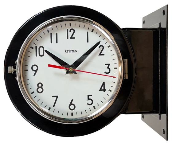 Vintage zwarte Citizen dubbelzijdige scheepswandklok, jaren 80
