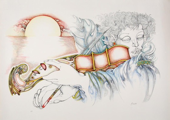 "Violinist" van Giuliano Pini is een fascinerende kleurenlitho gedrukt op hoogwaardig vatpapier, waarin de verfijnde figuratieve stijl van de kunstenaar goed tot zijn recht komt. Dit met de hand gesigneerde en genummerde werk maakt deel uit van een gelimiteerde oplage van slechts 125 afdrukken, waardoor het een gewild stuk is voor verzamelaars. Het beeldformaat is 38,0 x 62,5 cm en biedt een elegante visuele aanwezigheid. Met expressieve lijnen en een levendig kleurenpalet brengt Pini de emotionele essentie van muziek en menselijke expressie tot leven. Deze originele afdruk is ideaal voor liefhebbers van beeldende kunst en moderne Italiaanse lithografie en vormt een waardevolle aanvulling op elke collectie.
