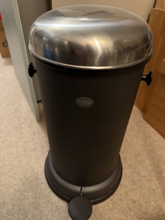Zeer nette Vipp pedaalemmer te koop. Kleur donkergrijs - zwart metallic. Er is een klein deukje op de klep, zoals te zien is op de laatste foto's. Kwa staat en afmeting uniek. De enige op Whoppa. De middelste maat van de vijf maten die Vipp heeft. ALLEEN OPHALEN