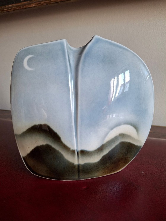 Virebent porseleinen vaas met motieven van zonsondergang en maanlicht.