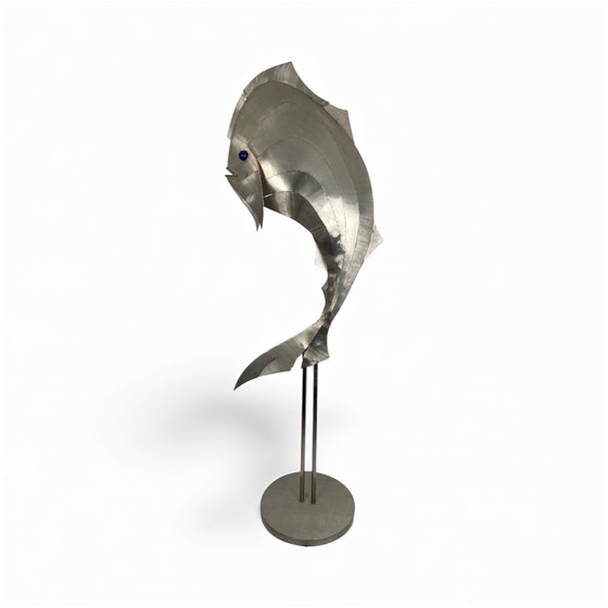 Deze roestvrijstalen vis, een opvallend beeldhouwwerk van de beroemde kunstenaar Reinhard Stubenrauch, is een toonbeeld van moderne artistieke expressie. Met een indrukwekkende hoogte van 181 cm is dit stuk ontworpen om te boeien en te inspireren, waardoor het een perfect middelpunt is voor elke moderne ruimte.