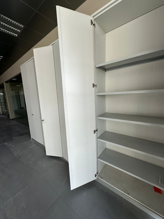Deze Vitra bureaukasten bieden een strakke en moderne opbergoplossing voor elk kantoor. Met hun witte afwerking passen ze moeiteloos in diverse interieurstijlen. De kasten zijn voorzien van meerdere planken, ideaal voor het organiseren van documenten en kantoorbenodigdheden. Ondanks enkele gebruikssporen zoals krassen en vlekken, blijven ze functioneel en stijlvol. Perfect voor wie op zoek is naar kwaliteit en design in tweedehands meubelen.