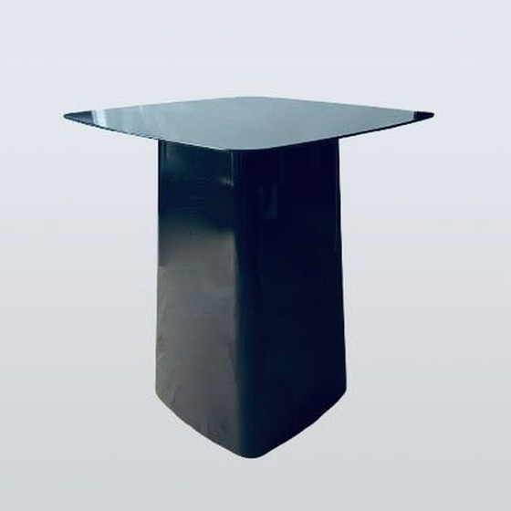 Metal Side Table, design Ronan & Erwan Bouroullec voor Vitra. Het dunne tafelblad en de voet zijn vervaardigd uit gebogen staal. Kleur: chocoladebruin gelakt. Bladdikte: 3 mm Lichte gebruikssporen aanwezig zijn. Vitra sticker aanwezig.