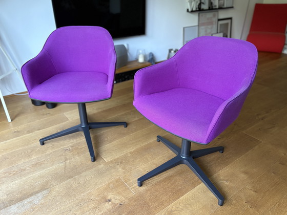 Hier de tekst :-) Voeg een vleugje kleur en comfort toe aan uw ruimte met deze Vitra Softshell Chair. Deze stoel, ontworpen door de gerenommeerde Ronan & Erwan Bouroullec, combineert een strakke, moderne esthetiek met een comfortabele functionaliteit. De levendige paarse textielbekleding is een echte blikvanger, terwijl de stevige zwarte metalen voet garant staat voor duurzaamheid.