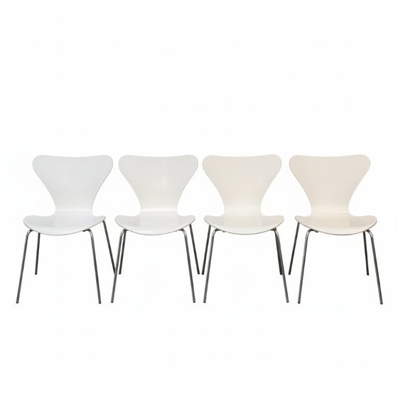 Ervaar de tijdloze elegantie van de Vlinderstoelen, ontworpen door Arne Jacobsen voor Fritz Hansen. Deze set van vier stoelen combineert iconisch Deens design met functionaliteit, perfect voor elke moderne eetkamer of kantoorruimte.