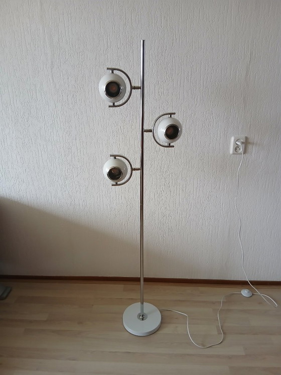 Vintage vloerlamp met 3 bol spots .
